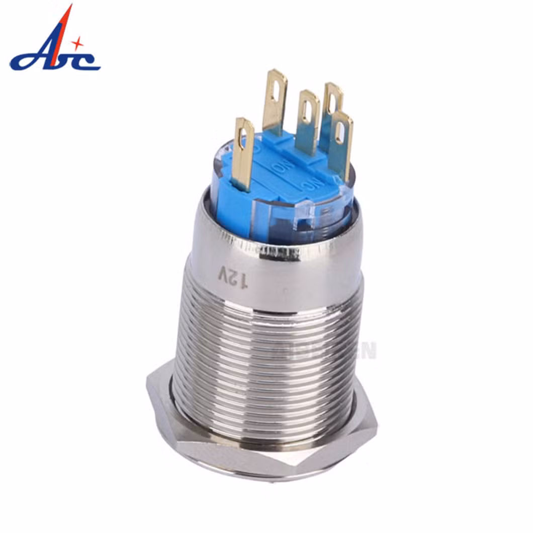 | What You Get | 1X Push button switch: 19mm,12V Blue LED,Latching,Brass nickel housing |